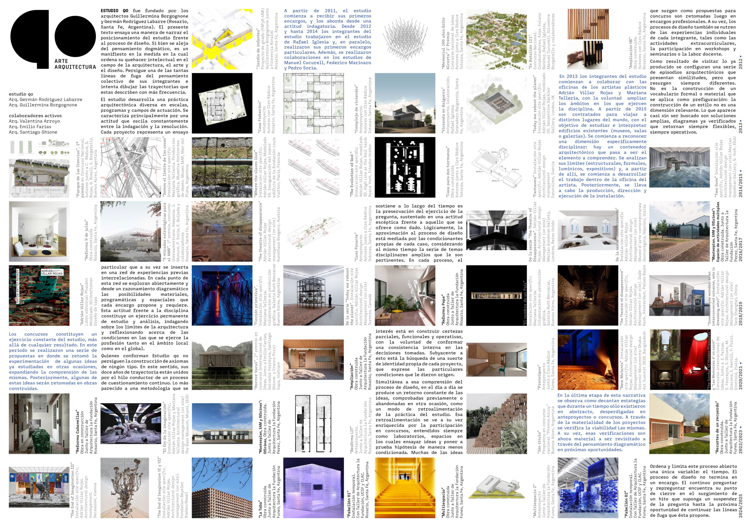 The members of Estudio qo do not seek to construct any kind of axioms. In this sense, its twelve years of trajectory are linked by the common thread of a continuous process of questioning. The closest thing to a sustained methodology is the preservation of the act of asking, supported by a skeptical stance toward what is presented as given. Naturally, the approach to design is mediated by the specific constraints of each case while simultaneously considering the broader disciplinary themes that pertain to it. In every process, the aim is to construct partial, functional, and operative certainties, striving to build internal consistency within the decisions made. Underlying this is the search for a kind of identity unique to each project—one that expresses the particular conditions that gave rise to it.